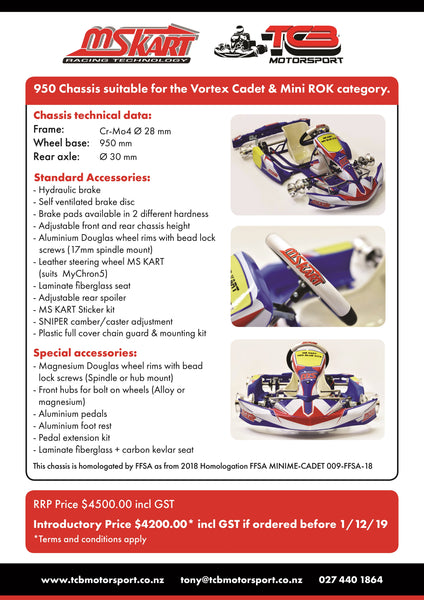 TCB Motorsport are not only the New Zealand Importer of MS Karts but we are agents for Rotax, Vortex, Raket, Kiwi Kart, Lightening Race Gear, Dunlop Tyres, NGK Plugs, DID Chains, Mychron Data Units, and much more, If its not on our online shop send us a message and lets see what we can do for you.